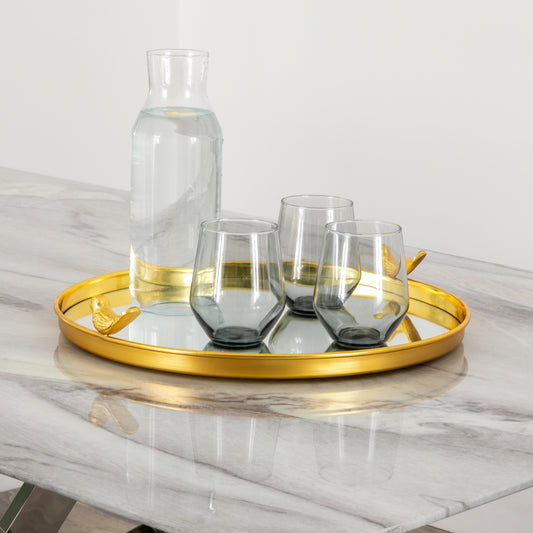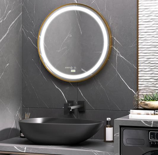 Gold round LED dimmable wall Mount Mirror with 3 Colours, Time Display, Memory Function, Hardwired